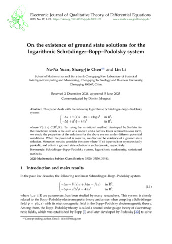 Yuan Na-Na; Chen Shang-Jie; Li Lin: On the existence of ground state solutions for the logarithmic Schrödinger-Bopp-Podolsky system. (2025)