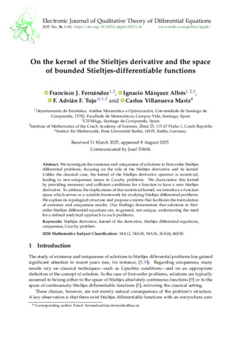 Fernández Francisco J.; Márquez Albés Ignacio; Tojo F. Adrián F.; Villanueva Mariz Carlos: On the kernel of the Stieltjes derivative and the space of bounded Stieltjes-differentiable functions. (2025)