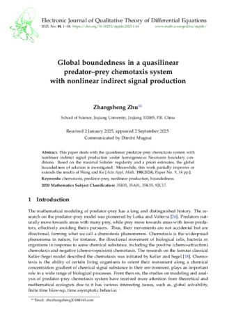 Zhu Zhangsheng: Global boundedness in a quasilinear predator-prey chemotaxis system with nonlinear indirect signal production. (2025)