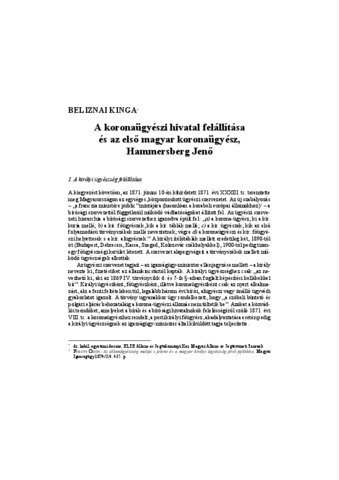| Egyéb cím: | The establishment of the Crown Prosecutor's Office and the first Hungarian Crown Prosecutor, Jenő Hammersberg |