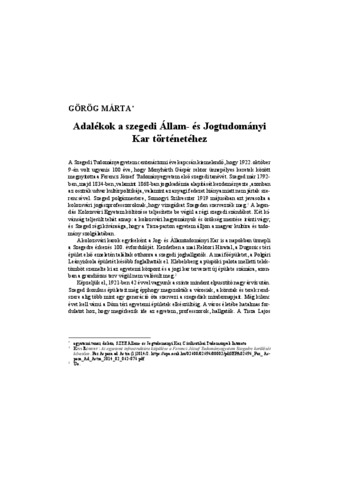 | Egyéb cím: | Additions to the history of the Faculty of Law and Political Sciences in Szeged |