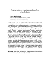 A szülés összetett, nehéz és nagy hatással bíró életesemény, melynek megélése befolyást gyakorolhat a posztnatális időszakra a pszichés állapot, a gyermekgondozás és az anya-gyermek kapcsolat kialakulásának tekintetében. Magát a szülésélményt számos tényező befolyásolja; így a várandósság lefolyása, megélése, és a várandósság alatt megtapasztalt tényezők. Jelen kutatásban célom az volt, hogy azonosítsam, a várandósság alatt megélt tényezők közül melyek fejtenek ki hatást a szubjektív szülésélményre, a szülés közben megélt érzelmekre. Online kérdőíves vizsgálatomban 260 édesanya vett részt. A várandósság harmadik trimeszterében mértem a szorongást (STAI-S), a depressziót (EPDS) a párkapcsolati elégedettséget (RAS-H), a szüléssel kapcsolat attitűdöt (Szülés attitűd Kérdőív), valamint a kontroll szerinti beállítódást (I-ECS). A posztpartum időszak (szülést követő hat hét) leteltével felvettem a szülésélményre vonatkozó adatokat. Eredményeim alapján több olyan tényezőt sikerült azonosítani, mely együttjárást mutat a szülés közben megélt pozitívabb érzésekkel. Úgy, mint a szorongás alacsonyabb szintje (p<0,001; ρ=-335), a depresszió kérdőíven elért alacsonyabb pontszám (p<0,001; ρ=-0,310) és a belső kontrollos beállítódás (W=117737; p=0,004). Ezen kívül megmutatkozott, hogy a belső kontroll hozzájárul a természetesebb, beavatkozásoktól mentes szülésre való felkészüléshez (W=25546; p=0,006). Az eredmények alapján kirajzolódik, hogy a várandósság alatt megélt pszichés állapot és a belső kontrollos beállítódás együttjárást mutat a szülés közben megélt érzelmekkel, tehát a szubjektív szülésélmény minőségével.