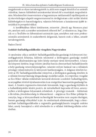 Badon Dávid: Szelektív hulladékgazdálkodás vizsgálata Nagyváradon : [absztrakt].