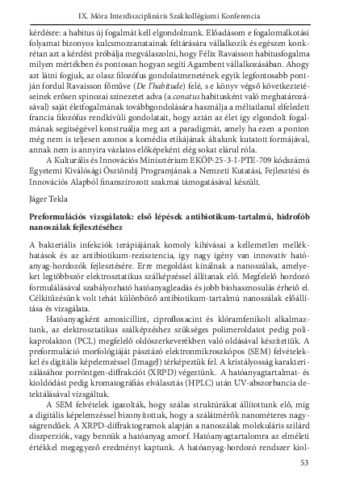 Jáger Tekla: Preformulációs vizsgálatok: első lépések antibiotikum-tartalmú, hidrofób nanoszálak fejlesztéséhez : [absztrakt].