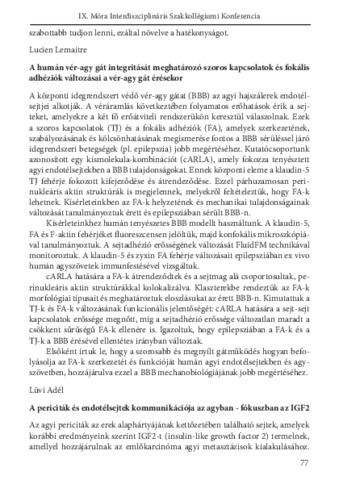 Lemaitre Lucien: A humán vér-agy gát integritását meghatározó szoros kapcsolatok és fokális adhéziók változásai a vér-agy gát érésekor : [absztrakt].
