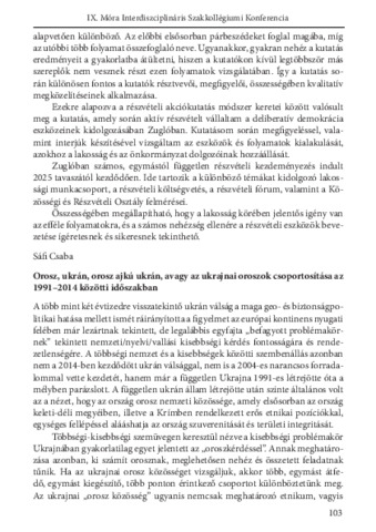 Sáfi Csaba: Orosz, ukrán, orosz ajkú ukrán, avagy az ukrajnai oroszok csoportosítása az 1991-2014 közötti időszakban : [absztrakt].
