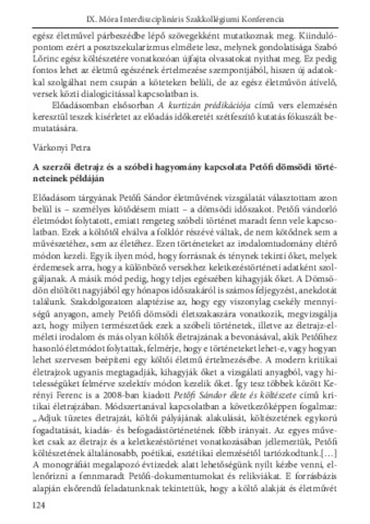 Várkonyi Petra: A szerzői életrajz és a szóbeli hagyomány kapcsolata Petőfi dömsödi történeteinek példáján : [absztrakt].