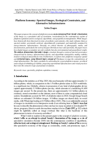 Dragon Zoltán: Platform iconomy: spectral images, ecological constraints, and alternative infrastructures.