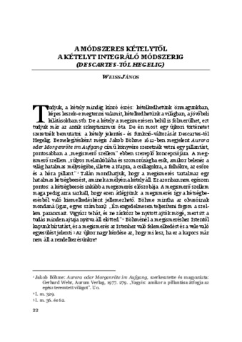 Weiss János: A módszeres kételytől a kételyt integráló módszerig : Descartes-tól Hegelig. In: A kétely, (21). pp. 22-30. (2024)