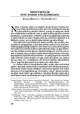 Balogh Brigitta; Földesi Renáta: Összetartozás : Pető András a felelősségről. In: A felelősség, (20). pp. 356-373. (2023)