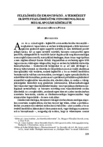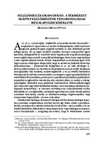 Marosán Bence Péter: Felelősség és emancipáció : a természet iránti felelősségünk fenomenológiai megalapozási kísérlete. In: A felelősség, (20). pp. 339-345. (2023)