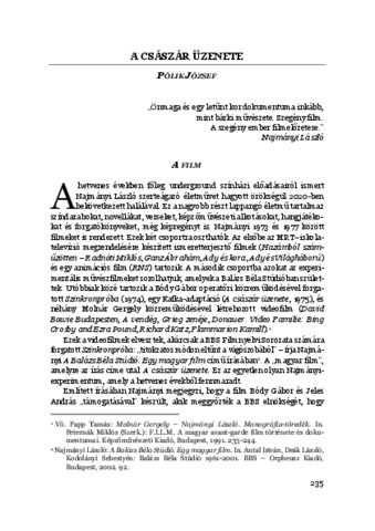 | Kulcsszavak: | Najmányi László, Filmművészet - magyar - 20-21. sz. - életmű |