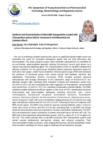 | Konferencia neve: | VIII. Symposium of Young Researchers on Pharmaceutical Technology, Biotechnology and Regulatory Science |