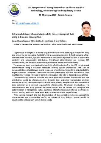 Truong Cong Khanh; Csóka Ildikó; Sipos Bence; Katona Gábor: Intranasal delivery of amphotericin B to the cerebrospinal fluid using a discoidal nano system : [abstract].