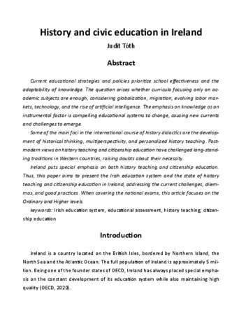 Tóth Judit: History and civic education in Ireland. In: Compass to history and civic education : comparing history education in 16 European and Asian Countries. pp. 77-94. (2025)