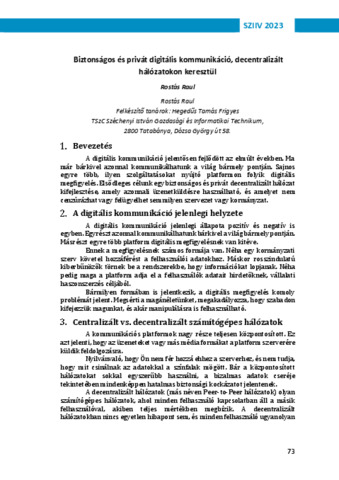 Rostás Raul: Biztonságos és privát digitális kommunikáció, decentralizált hálózatokon keresztül.