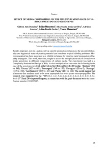Adu Donyina Gideon; Monostori Bálint; Arriaran Silva Elsa Maria; Szarvas Adrienn; Bordé-Pavlicz Ádám; Monostori Tamás: Effect of media composition on the multiplication rate of various sweet potato genotypes : [abstract].