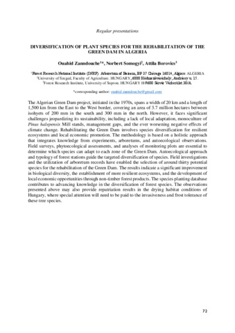 Zanndouche Ouahid; Somogyi Norbert; Borovics Attila: Diversification of plant species for the rehabilitation of the Green Dam in Algeria : [abstract].