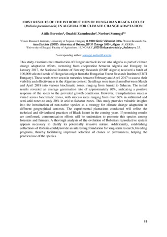 Kulcsszavak: Éghajlati változás - Algéria - előadáskivonat, Erdészet - akác - Algéria - előadáskivonat