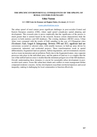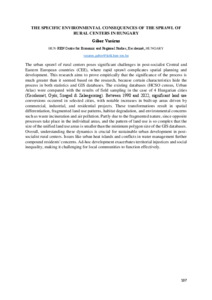 Vasárus Gábor: The specific environmental consequences of the sprawl of rural centers in Hungary : [abstract].