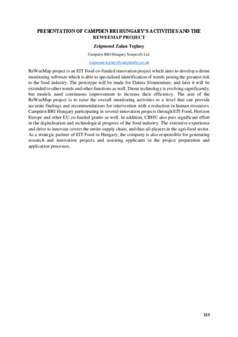 Téglásy Zsigmond Zalán: Presentation of Campden BRI Hungary's activities and the REWEEMAP project : [abstract].