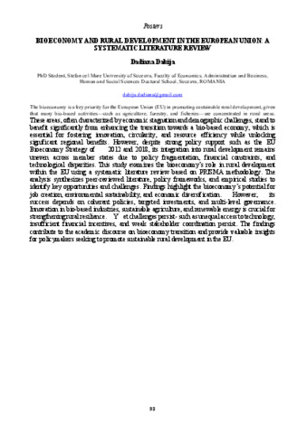 Dabija Dadiana: Bioeconomy and rural development in the European Union: a systematic literature review : [abstract].