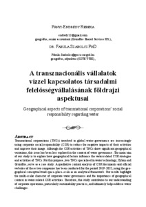 Pányi-Endrédy Rebeka; Fabula Szabolcs: A transznacionális vállalatok vízzel kapcsolatos társadalmi felelősségvállalásának földrajzi aspektusai = Geographical aspects of transnational corporations' social responsibility regarding water. In: Belvedere Meridionale, (37) 4. pp. 55-83. (2025)