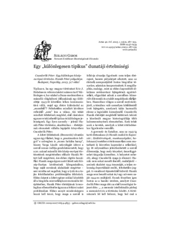 | Megjegyzések: | Ismertetett mű: Csunderlik Péter - Egy különlegesen közép-európai történész: Hanák Péter pályaképe ; Bibliogr. a lábjegyzetben |