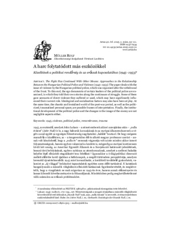 Müller Rolf: A harc folytatódott más eszközökkel : közelítések a politikai rendőrség és az erőszak kapcsolatához: 1945-1953. In: Aetas, (40) 2. pp. 95-111. (2025)