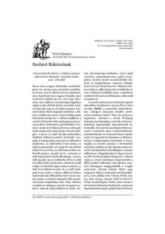 Tóth Ferenc: Szobrot Rákóczinak : [könyvismertetés]. In: Aetas, (40) 2. pp. 200-203. (2025)