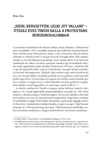 Péter Éva: "Siess, keresztyén, lelki jót vallani" - ötszáz éves Tinódi dalla a protestáns kórusirodalomban.
