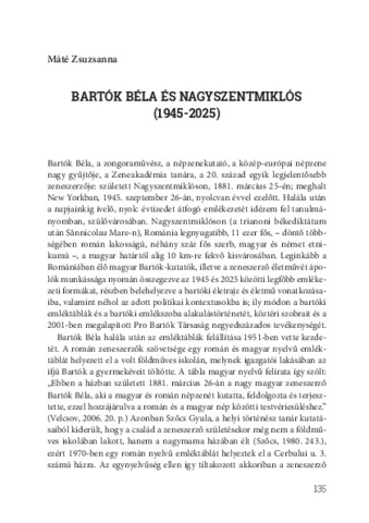 | Kulcsszavak: | Bartók Béla, Zeneszerzés - magyar - 19-20. sz. - életmű - életrajz, Néprajz - Nagyszentmiklós - 20-21. sz. |