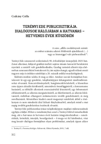 Csákány Csilla: Terényi Ede publicisztikája : dialógusok hálójában a hatvanas-hetvenes évek küszöbén.