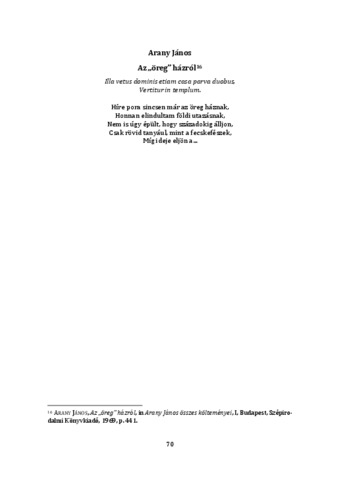 | Megjegyzések: | A vers Arany János : Az "öreg" házról, Arany János összes költeményei I. kötetében található meg. Budapest, Szépirodalmi könyvkiadó, 1969, p. 441. |