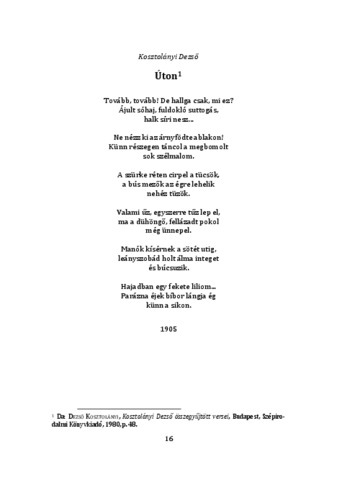 | Megjegyzések: | A vers a Kosztolányi Dezső összegyűjtött versei című kötetben található. Budapest, Szépirodalmi Könyvkiadó, 1980, p. 48. |