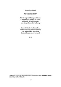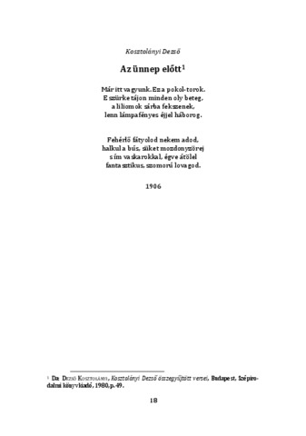 | Megjegyzések: | A vers a Kosztolányi Dezső összegyűjtött versei című kötetben található. Budapest, Szépirodalmi Könyvkiadó, 1980, p. 49. |