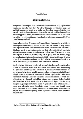 Vonnák Diána: Akklimátizáció = Acclimatazione : [novella]. In: Mosaico ungherese : la terza torre, (2). pp. 58-67. (2025)
