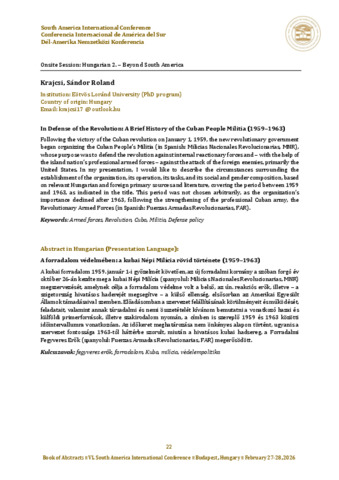 Krajcsi Sándor: In defense of the revolution: a brief history of the Cuban People Militia (1959-1963) = A forradalom védelmében: a kubai Népi Milícia rövid története (1959-1963) : [absztrakt].