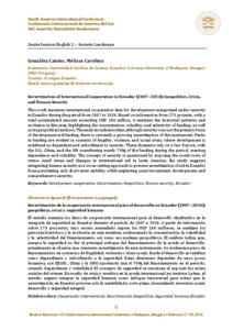 González Cantos Melissa Carolina: Securitization of international cooperation in Ecuador (2007-2024): geopolitics, crisis, and human security = Securitización de la cooperación internacional para el desarrollo en Ecuador (2007-2024): geopolítica, crisis y seguridad humana : [abstract].