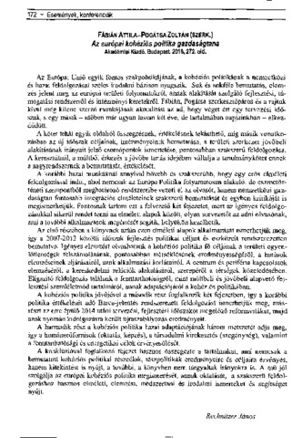 Rechnitzer János: Fábián Attila, Pogátsa Zoltán (szerk.): Az európai kohéziós politika gazdaságtana. Akadémiai Kiadó. Budapest. 2016, 272. old. In: Közép-európai közlemények, (9) 2. p. 172. (2016)