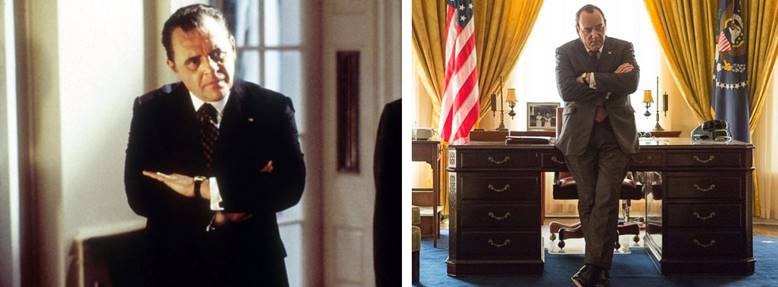 Picture 6-7: Left, Nixon. Dir. Oliver Stone. Perf. Anthony Hopkins. Illusion Entertainment, 1995. DVD. Right, Elvis & Nixon. Dir. Liza Johnson. Perf. Kevin Spacey. Amazon Studios, 2016. DVD.