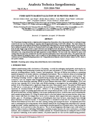 Analecta technica Szegedinensia 2023, 17. évf. 4. (2023)