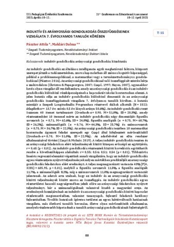 Pásztor Attila and Maklári Dalma: Induktív és arányossági gondolkodás összefüggéseinek vizsgálata 7. évfolyamos tanulók körében : [absztrakt].